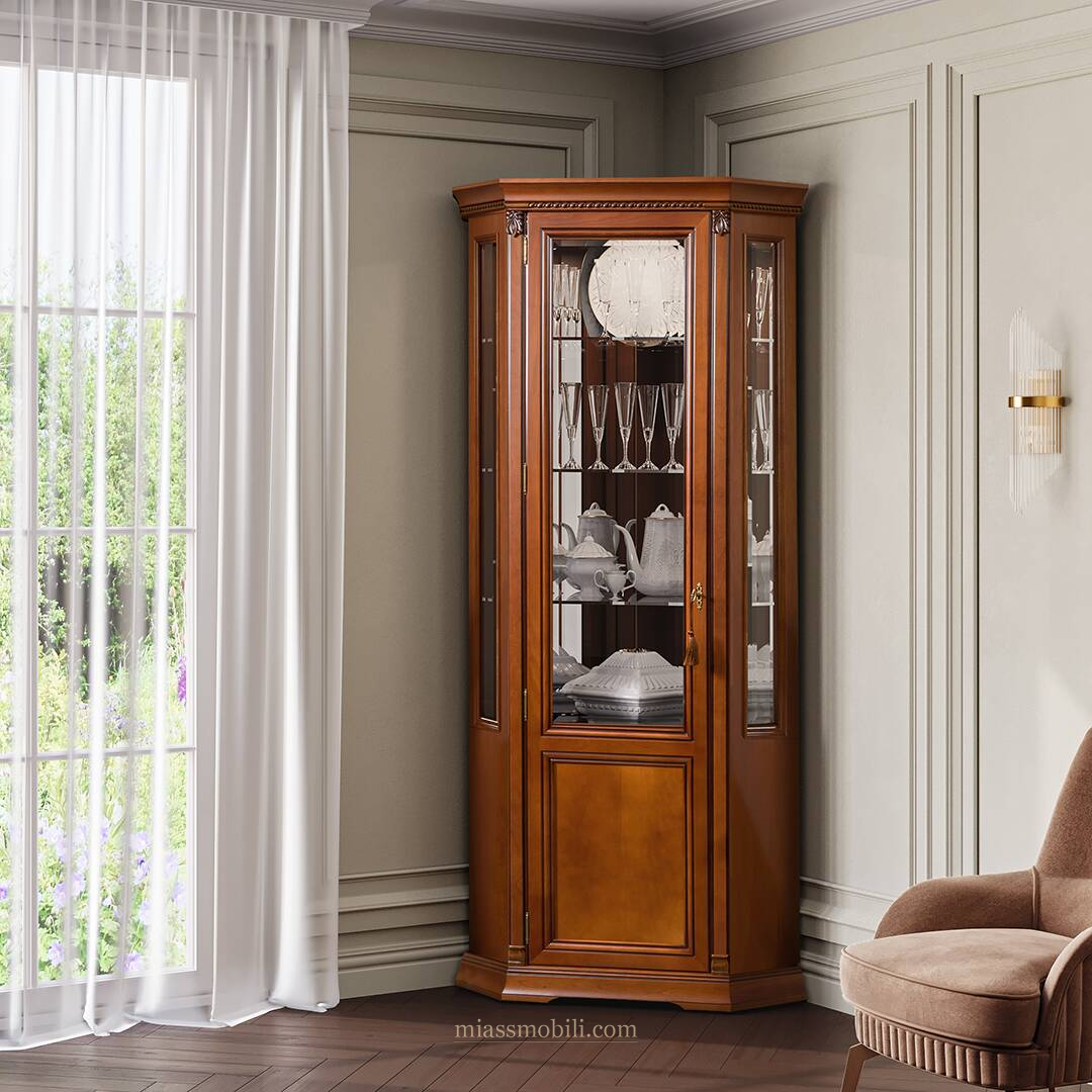 Шкаф для посуды угловой Лоренцо вишня Lorenzo вишня купить в Нижнем Новгороде