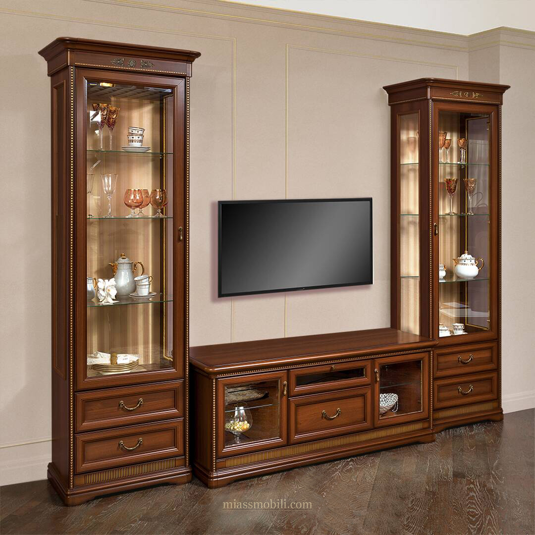Тумба ТВ со стеклянными дверками Joconda орех купить в Нижнем Новгороде