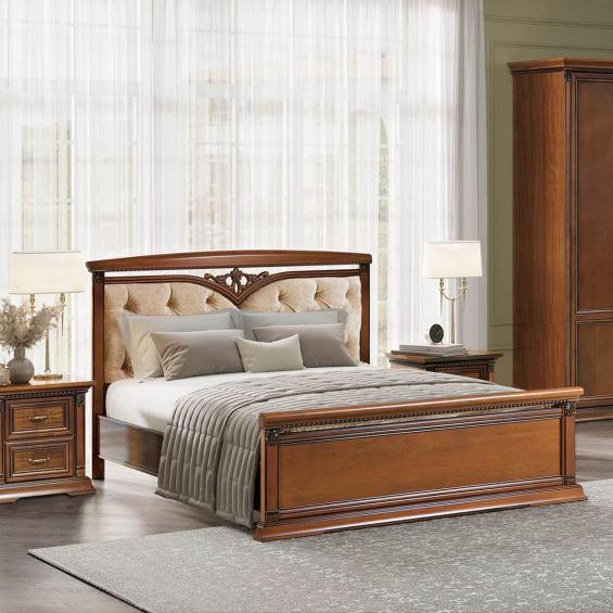 Кровать двойная Lorenzo вишня с кутанной головной и ножной спинкой Кровати купить в Нижнем Новгороде