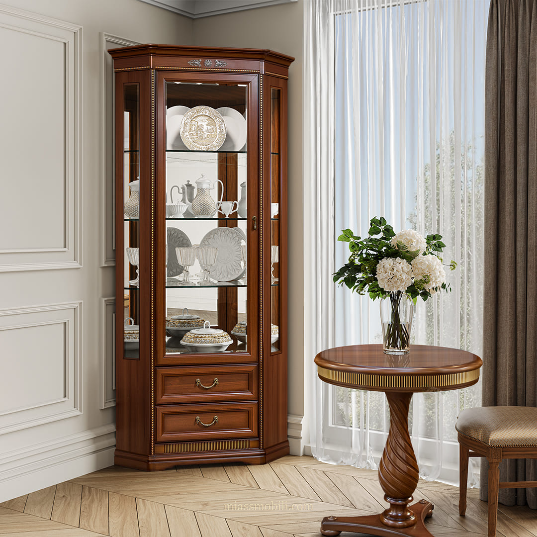 Шкаф для посуды угловой (с зеркалом) Джоконда орех купить в Нижнем Новгороде