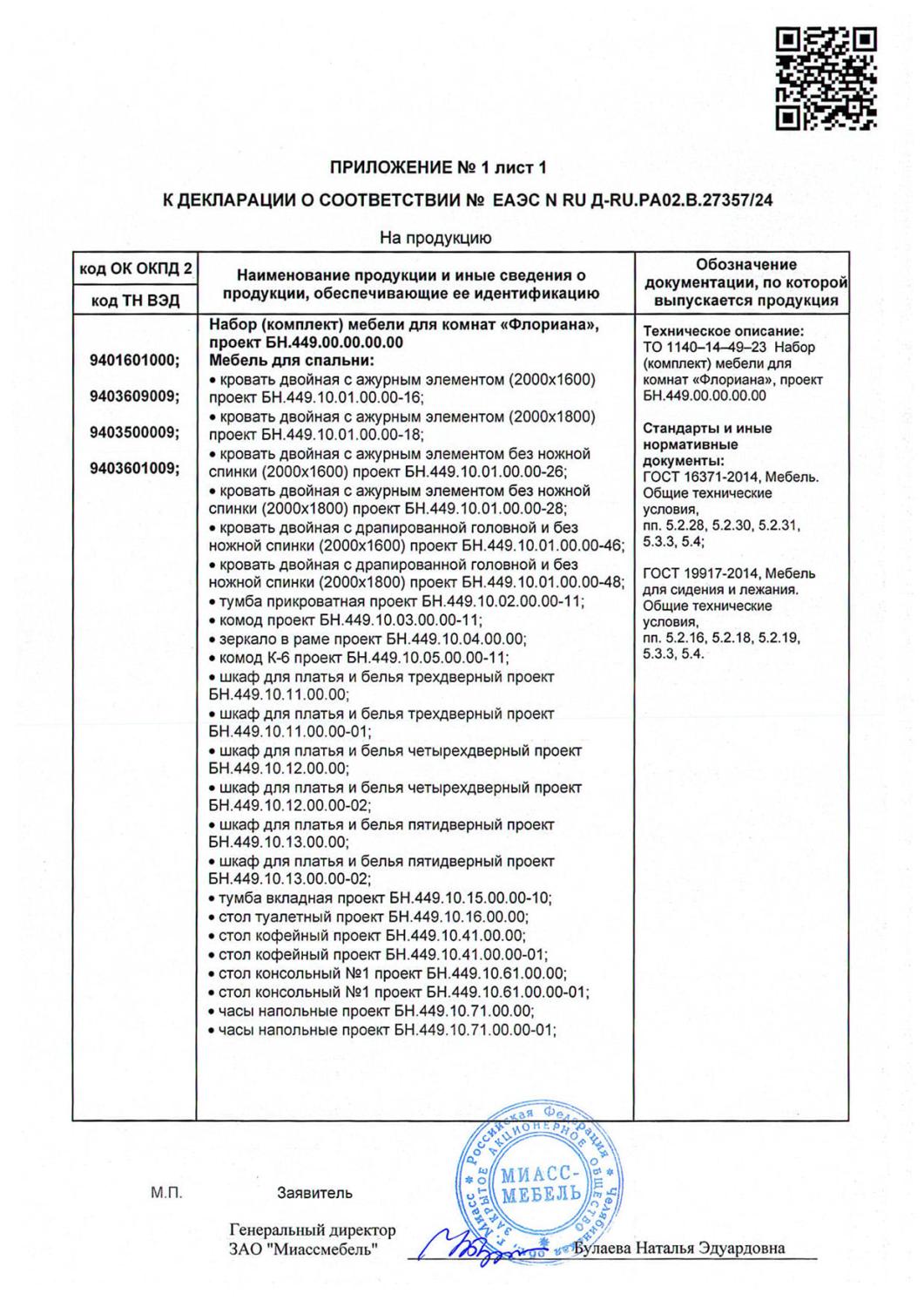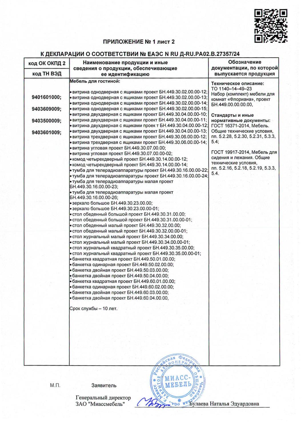 Декларация мебель Флориана