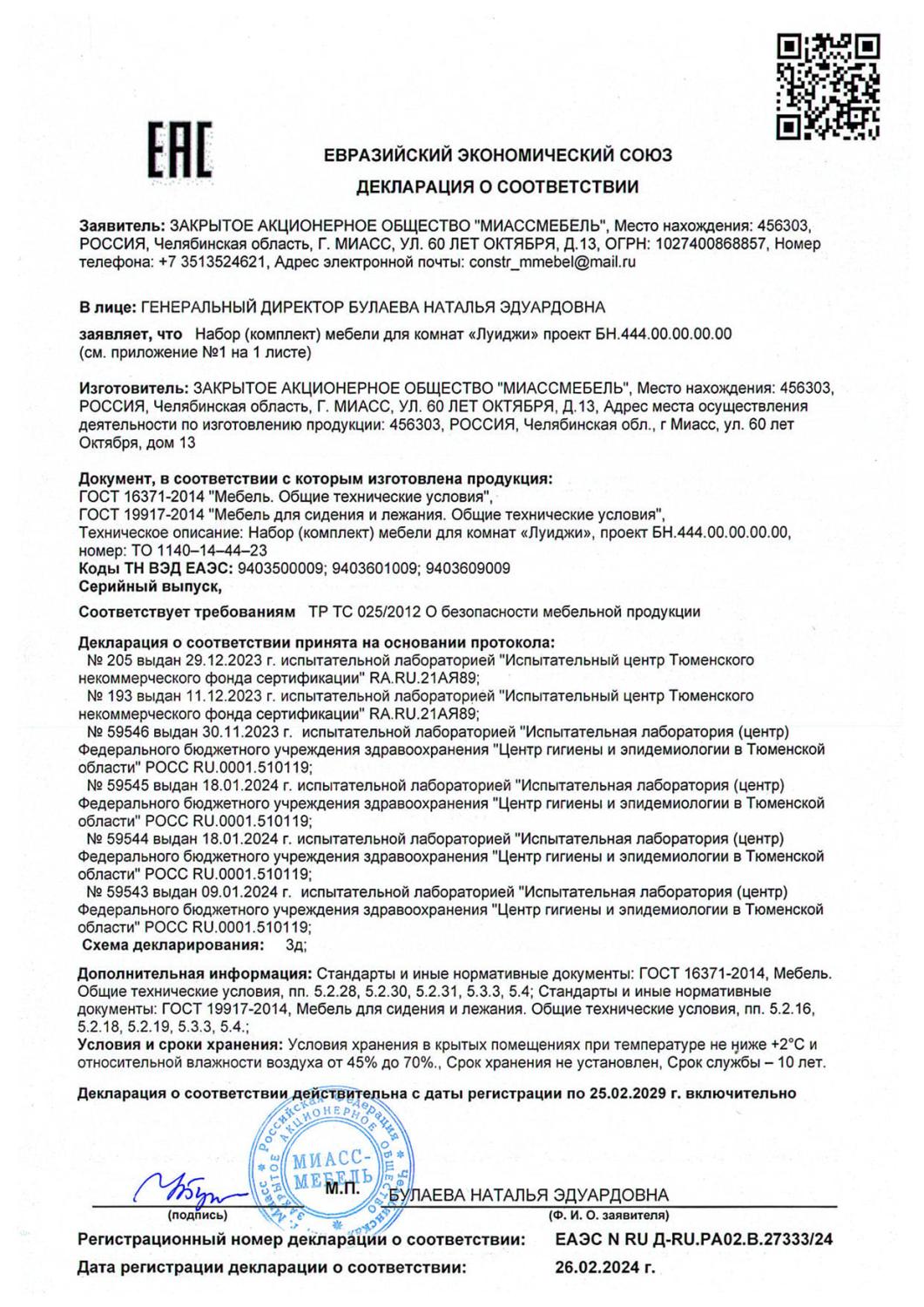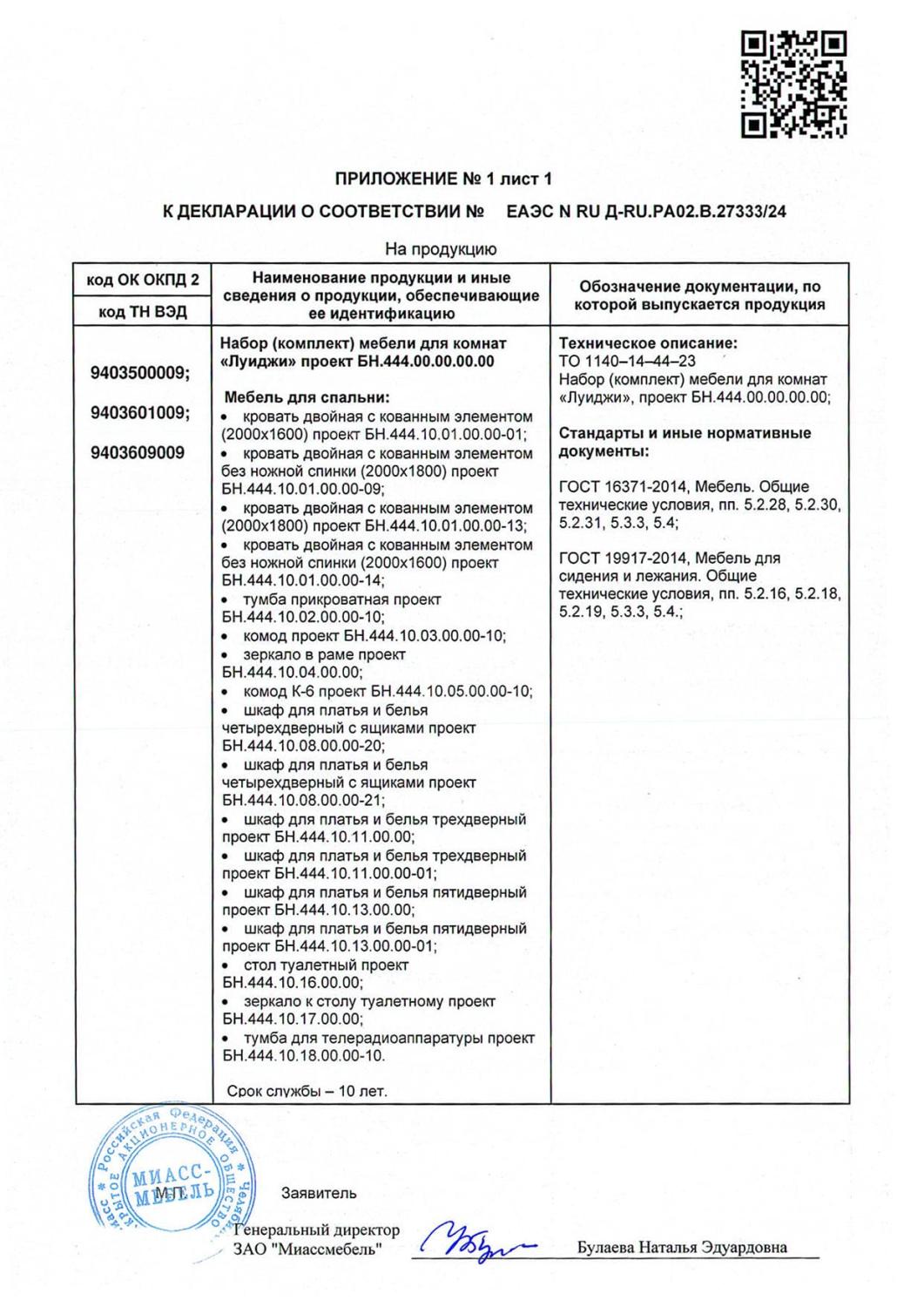 Декларация мебель Луиджи