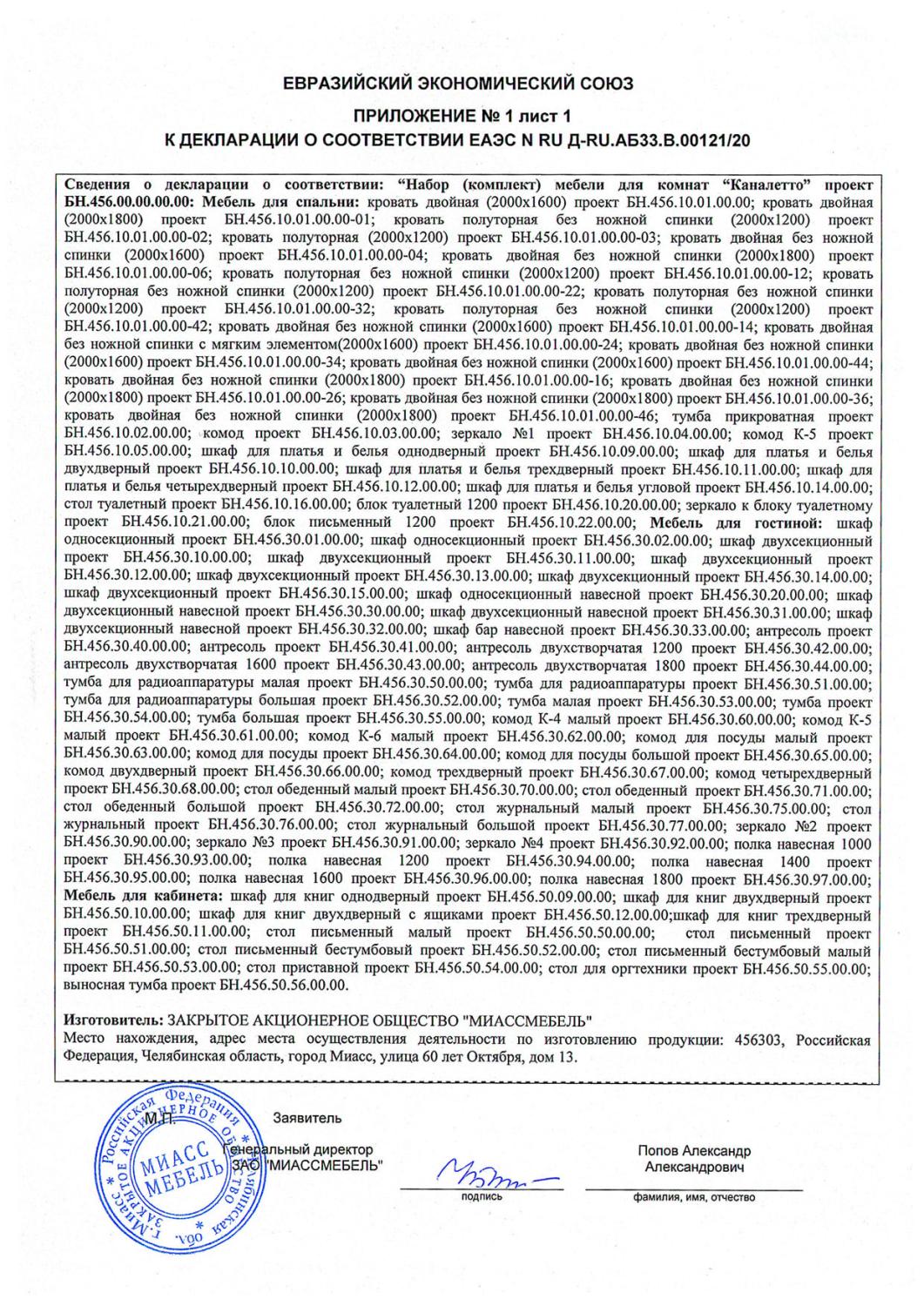 Декларация мебель Каналетто